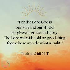 11For the Lord God is our sun and our shield. He gives us grace and glory. The Lord will withhold no good thing from those who do what is right.