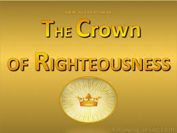 2 Timothy 4:8 (NLT) 8And now the prize awaits me—the crown of righteousness, which the Lord, the righteous Judge, will give me on the day of his return. And the prize is not just for me but for all who eagerly look forward to his appearing. |